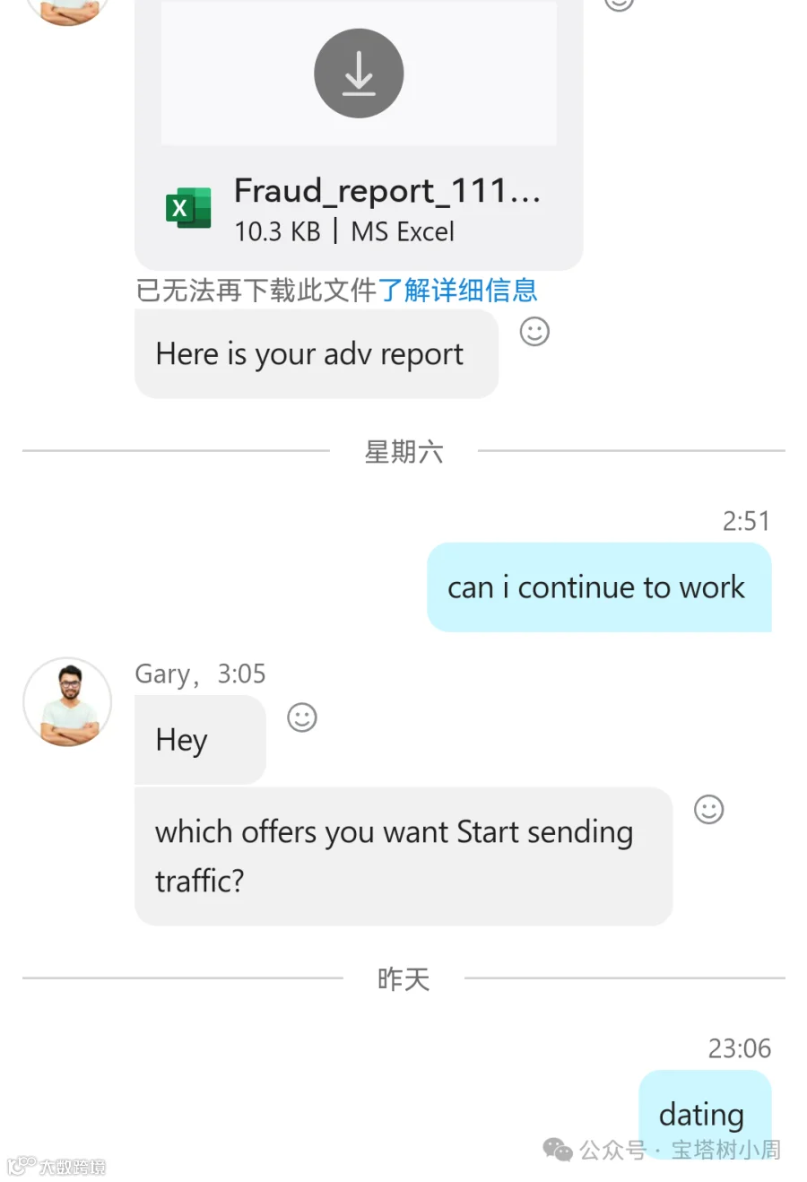 宝塔树小周今天遇到很搞笑事情,搞联盟被联盟经理发现我是EMU了,也就是老外经常说的欺诈,但是他仍然让我搞钱