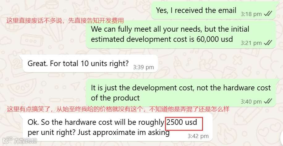 以近期一个真实案例为例:客户最初对一款工程类产品提出10套采购需求。交流中发现,其并非行业从业者,而是代其客户询价。由于产品涉及竞标流程,且对方无法提供相关图片或视频,初步判断其仅为信息收集。