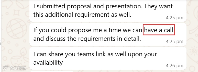 数日后,客户称其客户有定制需求,并坚持必须通过视频会议沟通。考虑到定制需技术介入,且短期内频繁变更需求不符合正常项目节奏,判断订单真实性存疑。若盲目配合视频会议,不仅消耗内部资源,还可能陷入被动。