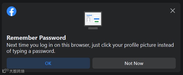 在公共电脑或他人的移动设备上登录Facebook账户时,切勿选择“记住密码”选项。