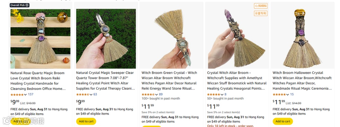 但这些产品在海外售卖有相当可观的利润空间,在Esty上,像上文提到的水晶魔法扫帚,售价在2.59美元—89.99美元之间,且款式多样。