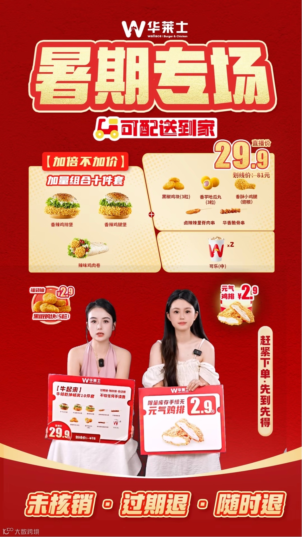 华莱士在“全鸡”这一大单品限时回归之季,接入随心团。