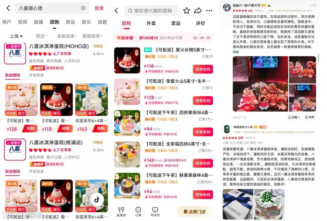 打开团购产品的评论区,可以看到不少消费者的声音:“已经回购好几次了”“承包了我们家今年的生日蛋糕”“后面有需要还会再买”等等。“在家里尝第一口”的确定性,变成了“下一次到店买”的信心。