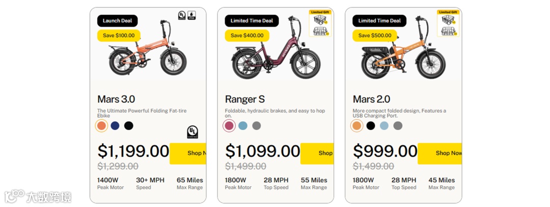 在起步阶段,Heybike推出了两类核心车型:一款面向北美通勤的城市车,另一款针对户外场景的可折叠胖胎车。这种组合既避开了和主流品牌的正面竞争,又在细分市场找到差异化优势。