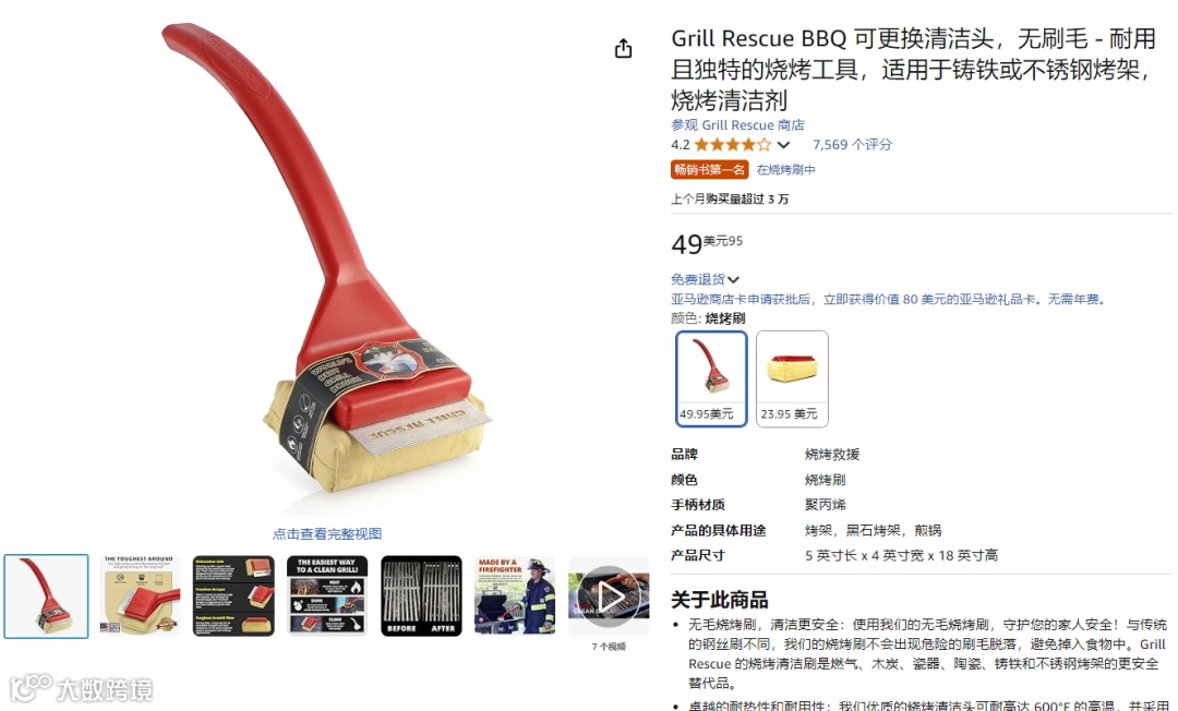 这款来自本土品牌Grill Rescue的烤炉清洁刷,亚马逊售价49.95美元,过去一个月已卖出超3万件,登顶BS榜。