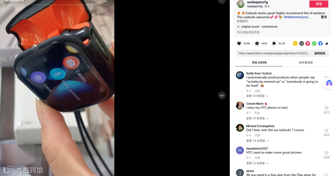 近期一款小众蓝牙耳机在TikTok走红。