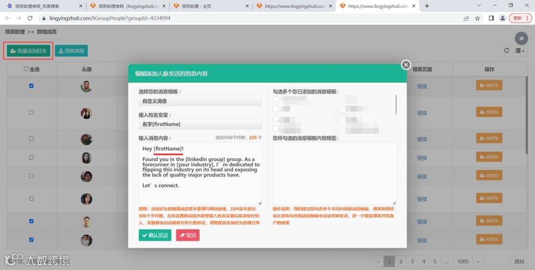 如果你和我一样用领英助理的话,那就更方便,在消息里插入姓名变量,就可以直接自动替换成客户的名字。
