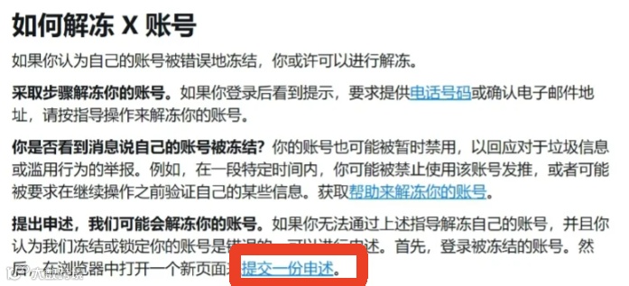 在账号冻结页面直接点击 [提交申诉] 等字样,跳转申诉页面进行申诉。