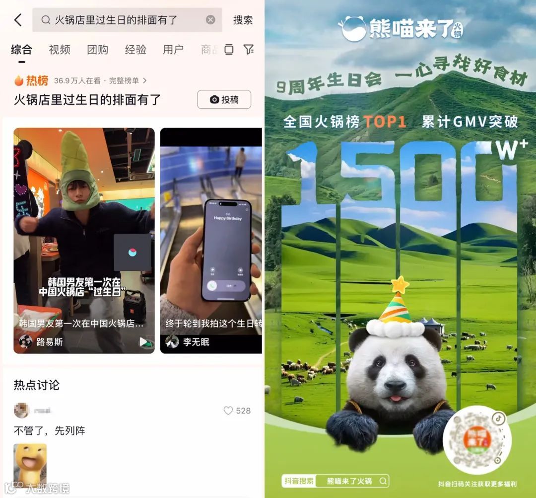 例如,在熊喵来了火锅品牌9周年之际,并没有采取餐饮行业惯常的“低价促销”逻辑,而是通过品牌升级发布会,围绕生日和寻找好食材主题,开启专场直播,实现非低价货盘直播破峰1500w+。