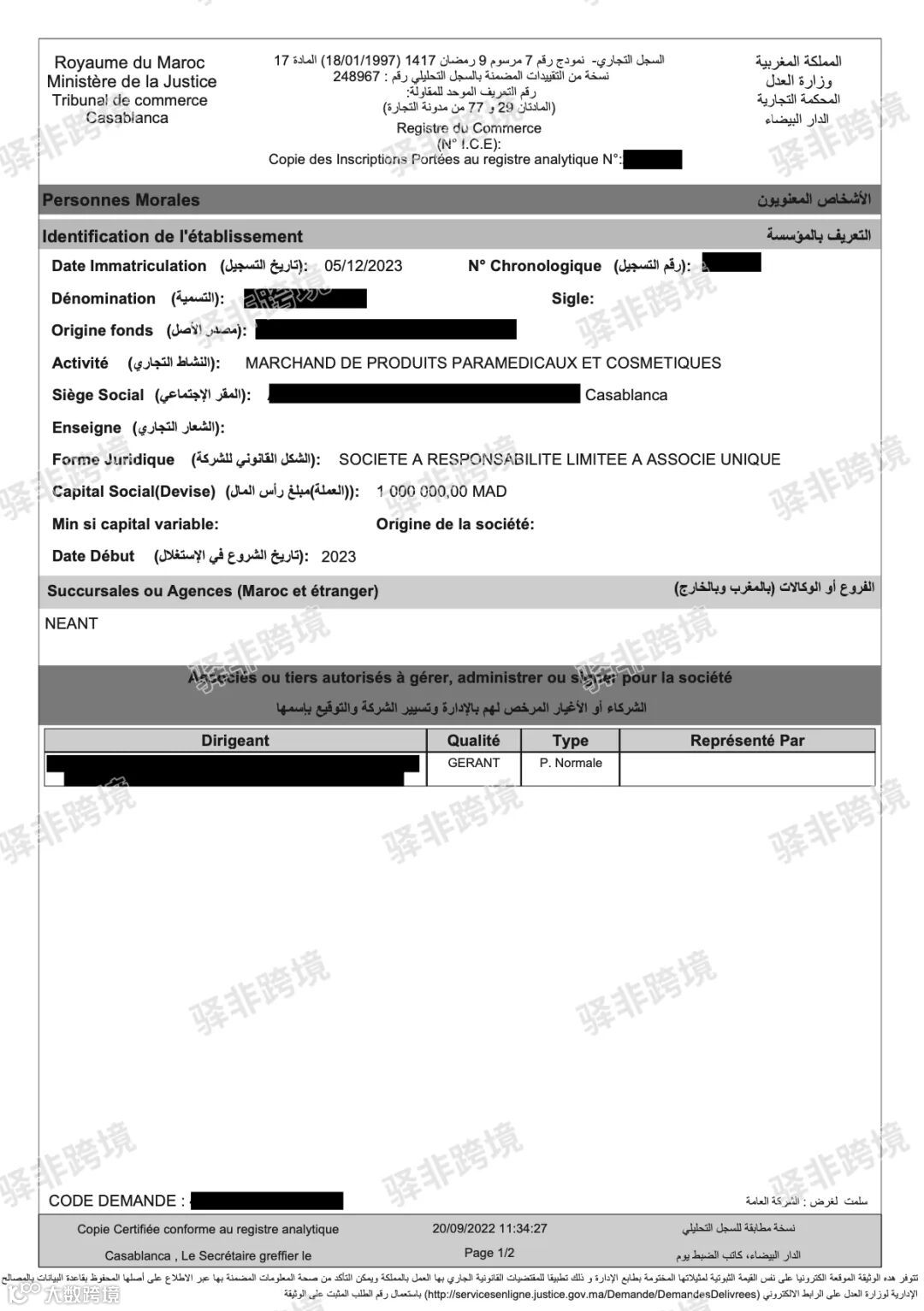 驿非跨境已协助客户在摩洛哥纳祖尔自贸区完成公司注册,以下是案例展示: