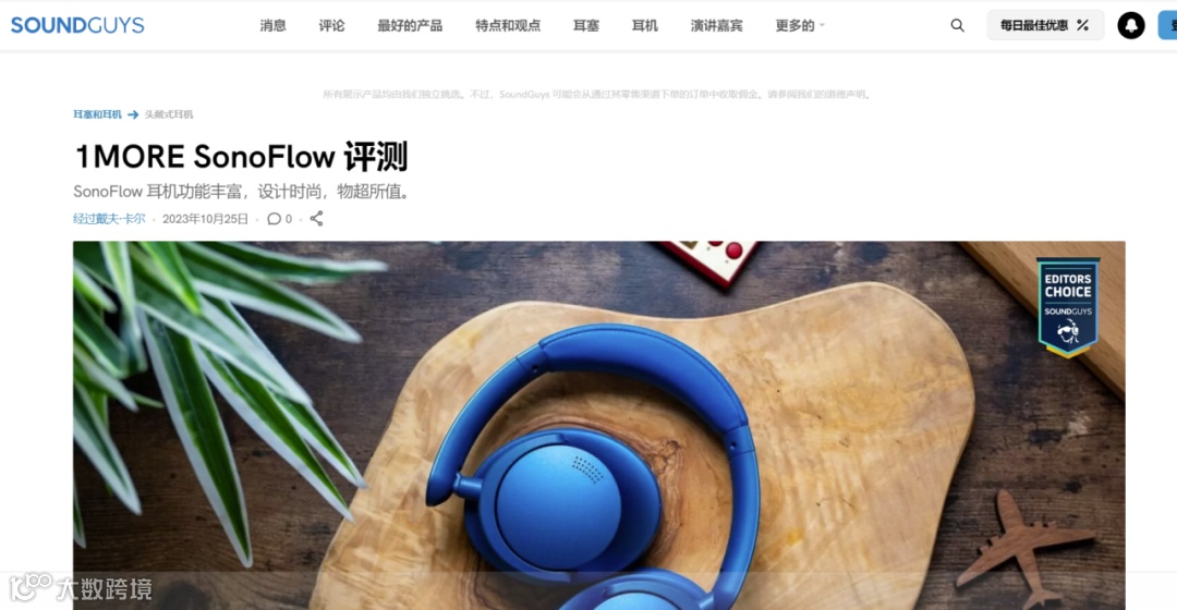 SoundGuys是耳机测评行业中的头号顶流,凭借专业客观的内容每月吸引超百万用户。2023年上线的1 More头戴式耳机测评稿件,将其称为百元以内头戴式主动降噪的绝佳选择。