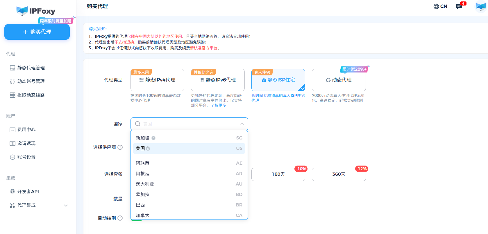 如果你需要在 Marketplace可用地区稳定运营账号,可以选择可靠的住宅代理服务,比如IPFoxy住宅代理,支持全球 200+ 地区,帮助账号模拟真实本地环境,大幅降低异常风险。