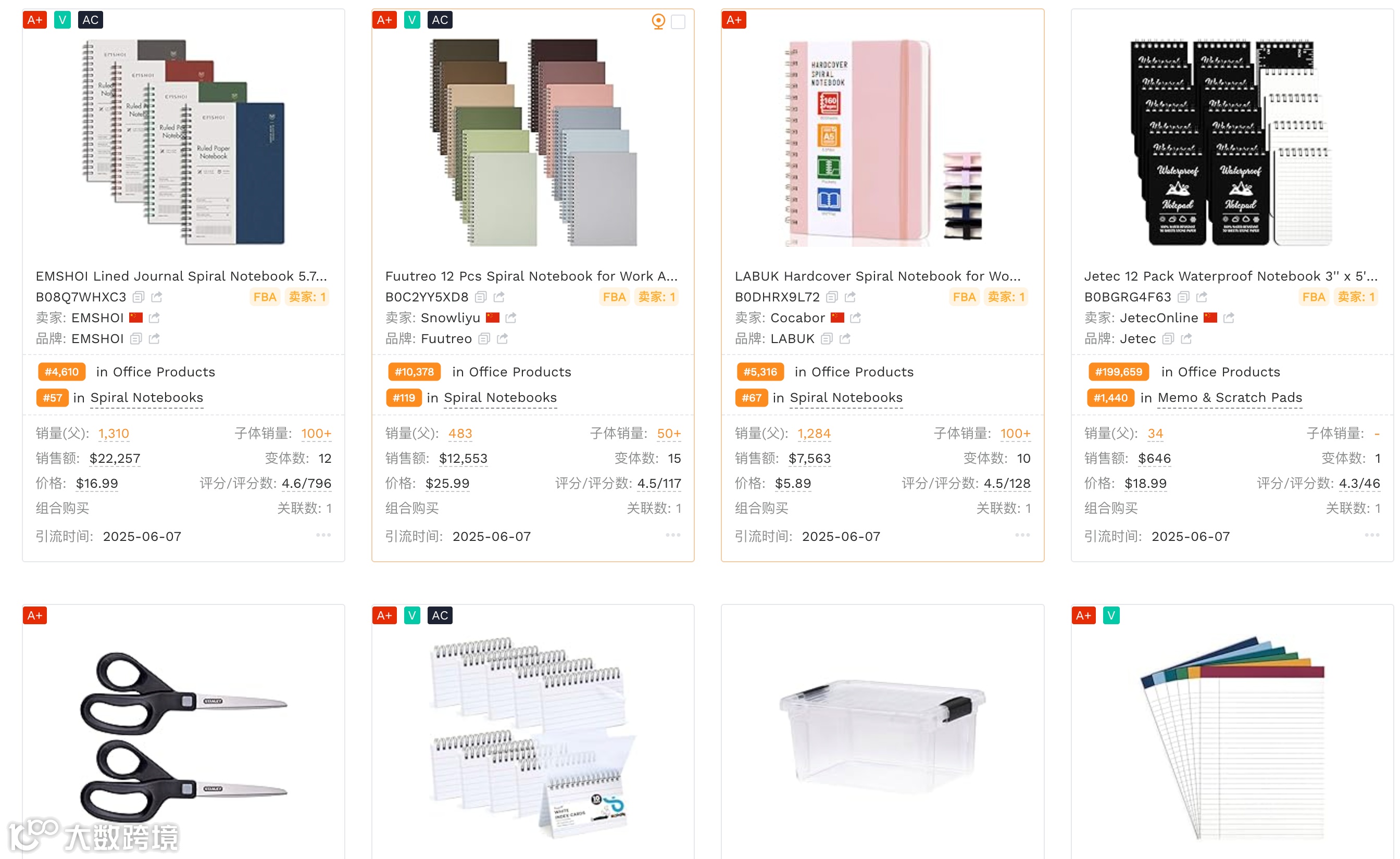 3. 可以看到产品是笔,查询获得关联ASIN的类型是笔记本,剪刀,收纳箱。