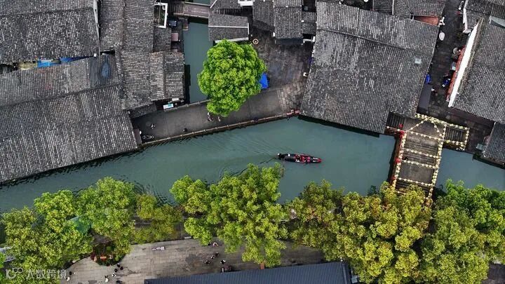 乌篷船行驶在安昌古镇的河道上。新华社记者 王迎 摄