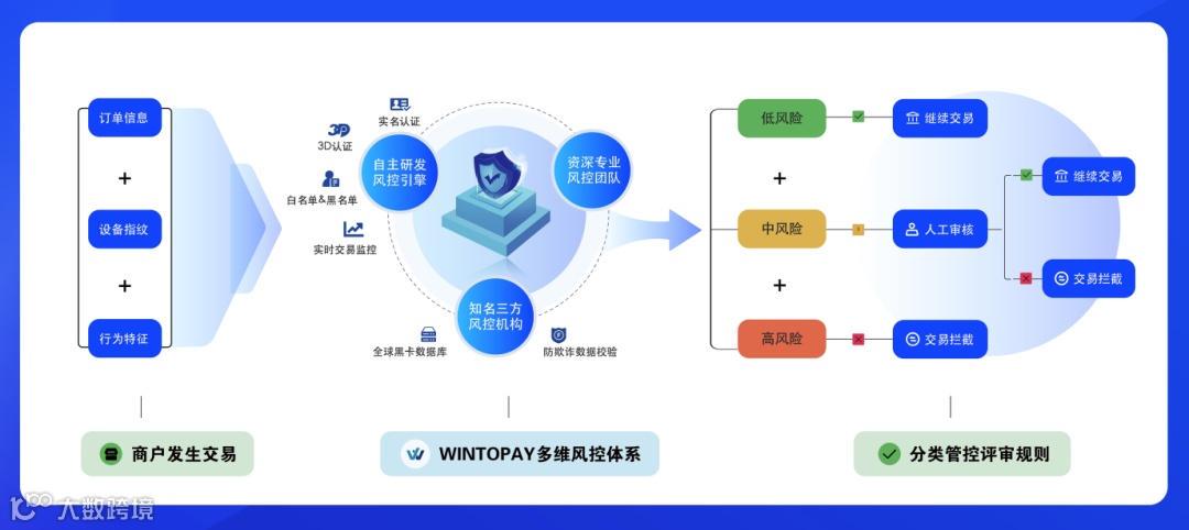 此外,作为一家专业的全球数字支付服务商,WINTOPAY 拥有强大且完备的事前、事中、事后闭环式风控管理体系,可通过采用3D验证或建立欺诈黑名单等方式,以完善的运营体系和风控体系来减少欺诈交易。据不完全统计,WINTOPAY 的风控系统已成功拦截了数千起高风险交易,为客户挽回了经济损失。
