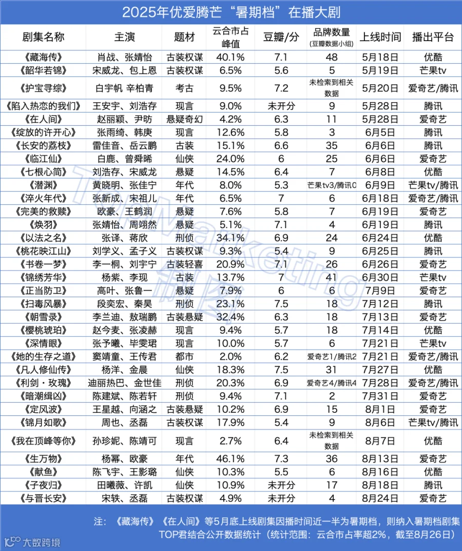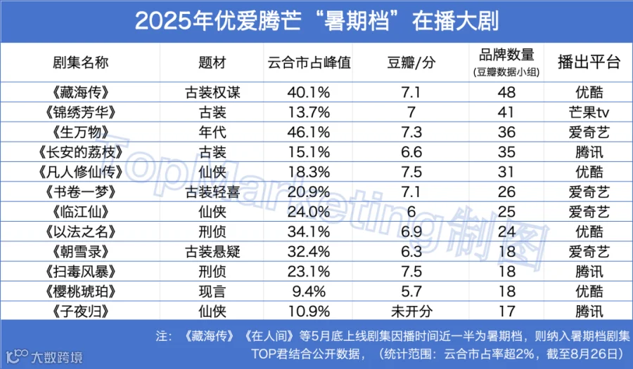 图/暑期档剧集合作品牌数TOP10,剧风仔结合公开数据整理