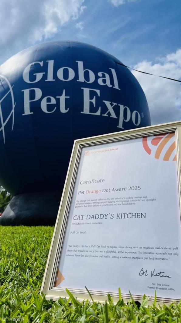 2025年初,该品牌在美国奥兰多全球宠物用品博览会上,从3000多个参评品牌中脱颖而出,荣获国际“橙点奖”。美国宠物产品协会(APPA)前主席Bob Vetere评价其“为宠物营养领域树立了全新标杆”。