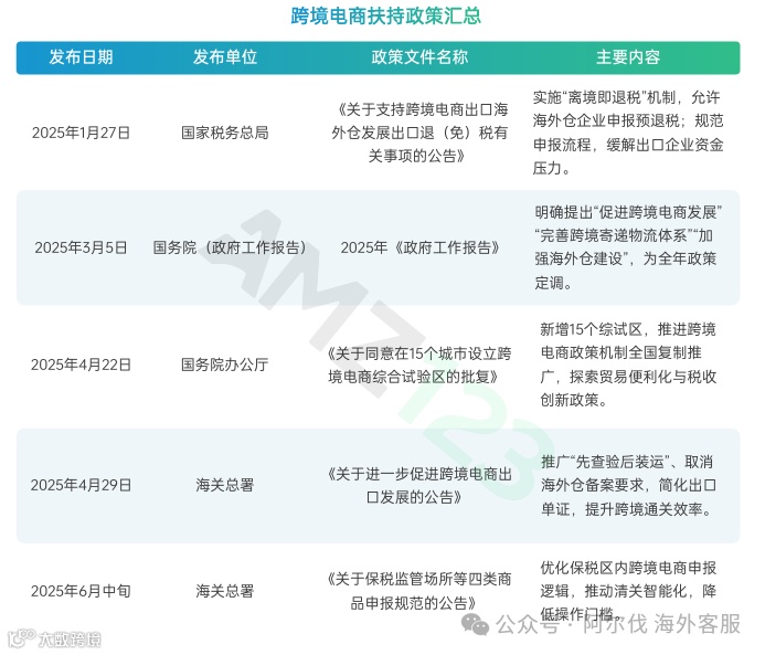 政策加持:国家密集出台退税、通关、海外仓等扶持政策,综合试验区增至165个,生态持续优化。