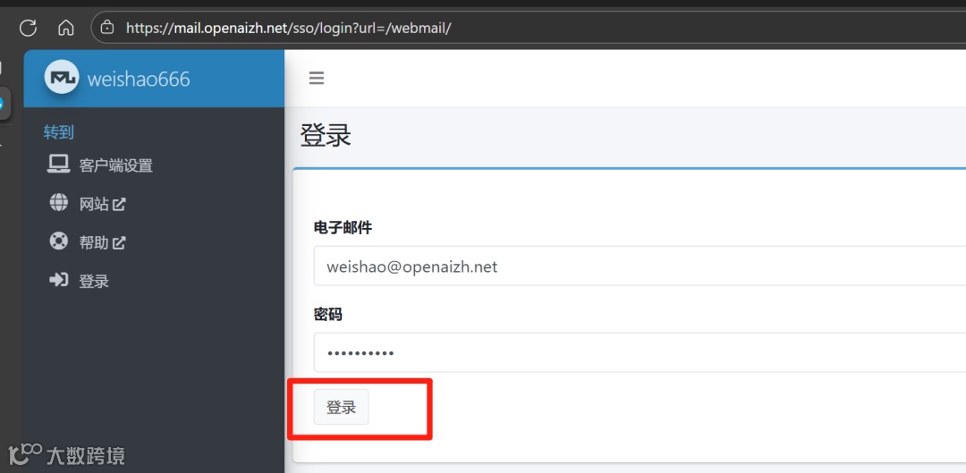现在可以打开mailu后台了,地址是https://mail.你的域名.com