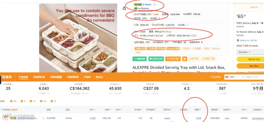 单量:在卖家精灵中显示上架时间是2023年09月24号,目前为止持续销售275天,30天销售量1204,,