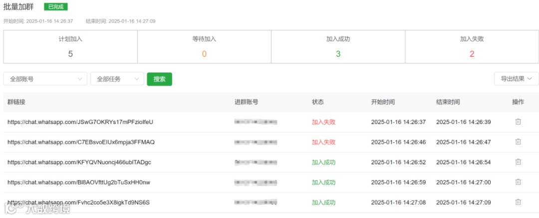 面对大量有效链接,可使用WADesk“批量加群”功能实现自动化处理。