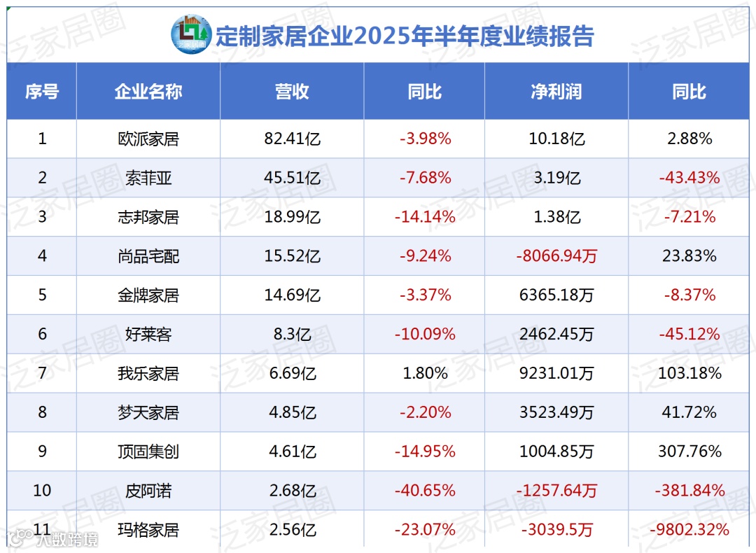 2025上半年定制家居企业业绩盘点:欧派稳居榜首,我乐净利翻倍