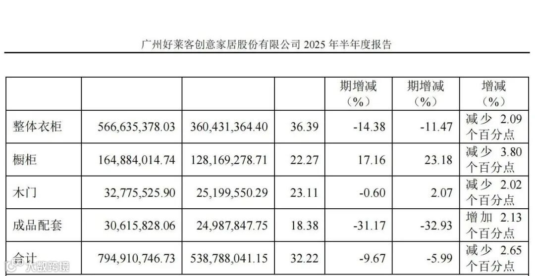 好莱客上半年营收8.30亿元,同比下降10.09%;归母净利润2462.45万元,同比下降45.12%。核心产品整体衣柜收入5.67亿元,同比下降14.38%。经销与直营渠道收入均下滑。报告期内新开221家经销店,关闭162家经销店和6家直营店,总门店数达1910家,净增53家。我乐家居:营收6.69亿元,净利润翻倍