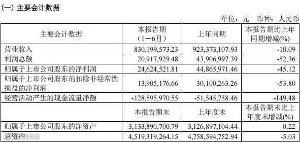 玛格家居上半年营收2.56亿元,同比下降23.07%;归母净利润亏损3039.5万元,同比大幅下滑9802.32%。公司表示,受行业景气度低迷、市场竞争加剧影响,订单量减少导致营收收缩。