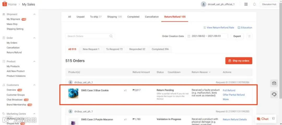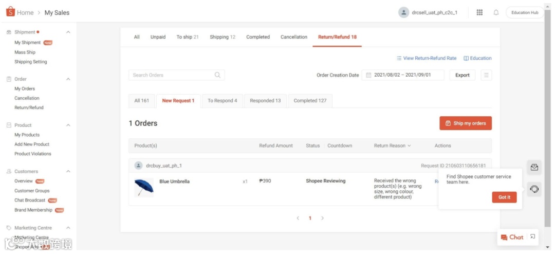 买家提交退货/退款请求后,Shopee将直接处理,卖家无需手动批准或拒绝。