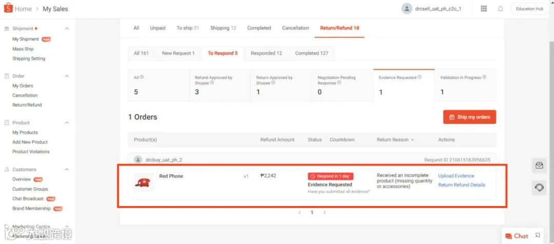 - Shopee可直接退款给买家(无需退货)或接受退货。