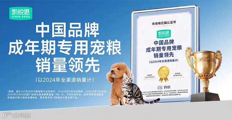 市场数据印证了这一战略的有效性。据CIC灼识咨询认证,2024年凯锐思在“分阶宠粮”、“成年期专用宠粮”和“幼年期专用宠粮”三大赛道,实现全渠道(不含私域平台)销量领先。