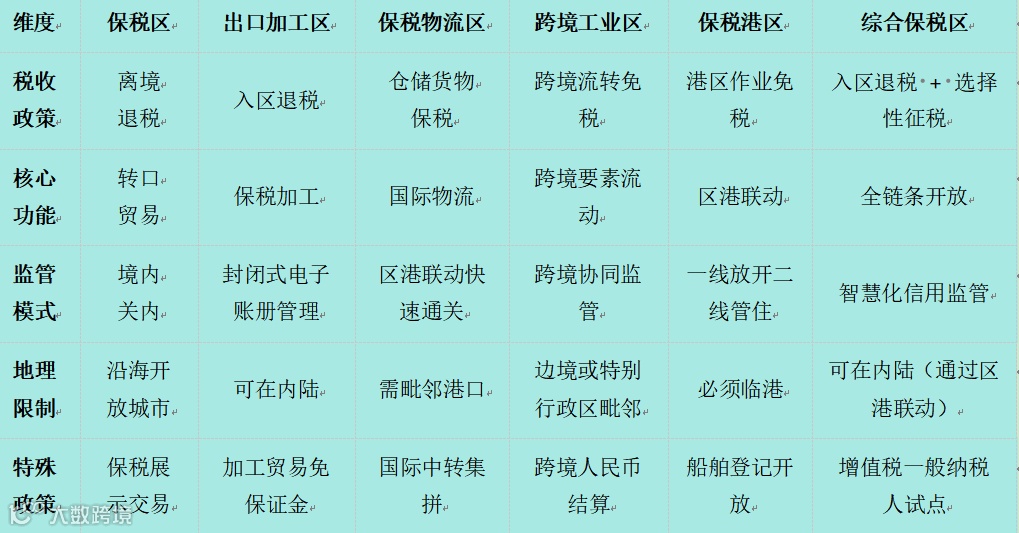 海关特殊监管区域六种模式如下。(文章最后附表格)