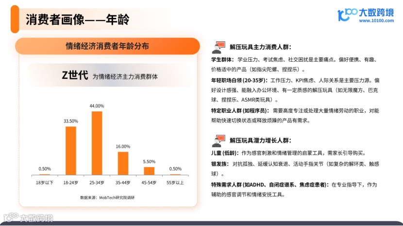 在解压玩具消费方面,主力消费人群涵盖学生群体(受学业、社交等压力困扰,偏好便携有趣、价格适中的产品,如指尖陀螺、捏捏乐)、年轻职场白领(20 - 35 岁,因工作、人际等压力,倾向设计感强、能融入办公环境且有质感的玩具,像无限魔方、巴克球等),还有程序员等特定职业人群(需要能快速切换状态或释放烦躁的产品)。