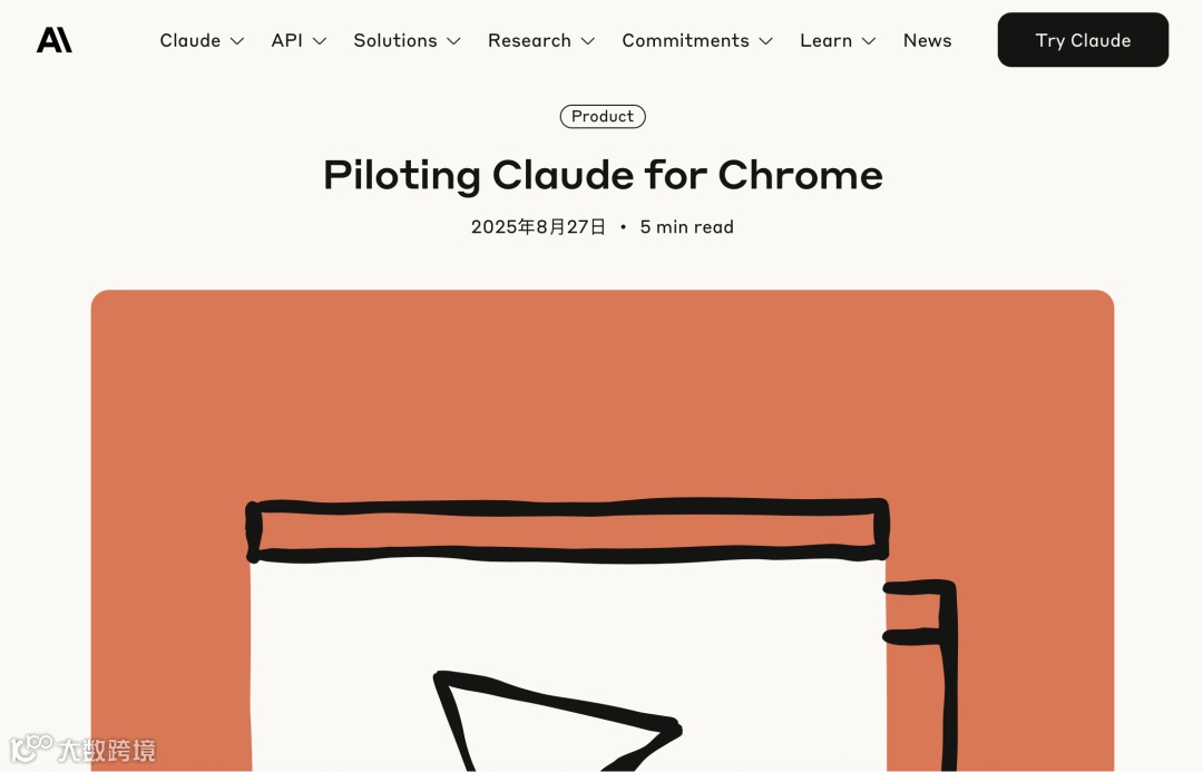 AI初创公司Anthropic于8月26日发布基于Claude模型的浏览器智能体“Claude for Chrome”,首批仅限1000名Max订阅用户使用(月费100-200美元),其他用户可登记候补。该插件可在授权后执行邮件撰写、日程管理、表单填写、费用报销等任务,标志着Anthropic正式入局浏览器AI竞争。