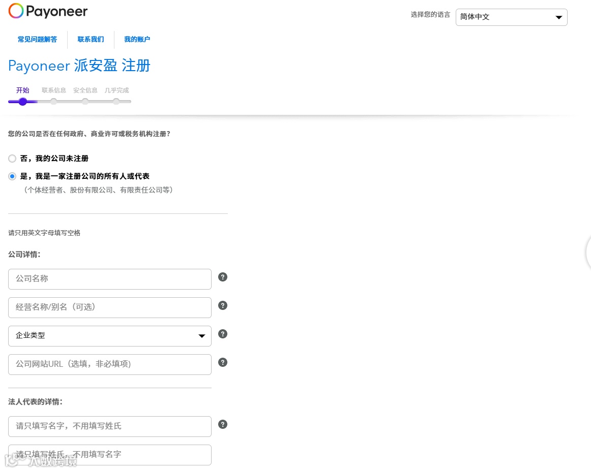 小贴士:如果你已经有Payoneer个人账户,也可以在后台申请“升级为企业账户”。