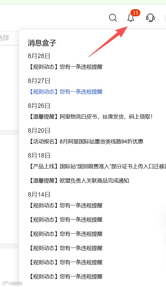 查看平台违规记录非常简单。登录后台后,点击右上角的“消息盒子”,如有违规提示,进入即可查看详情。