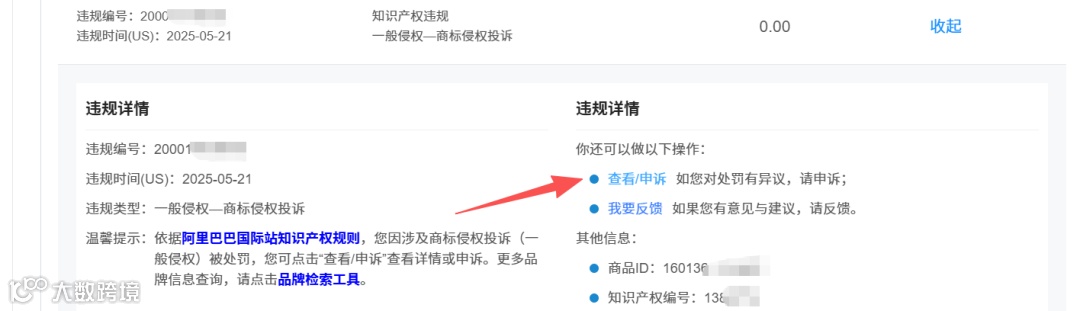 常见违规类型包括商标侵权、图片盗用及商品信息违规等,均可在页面中点击查看具体详情。