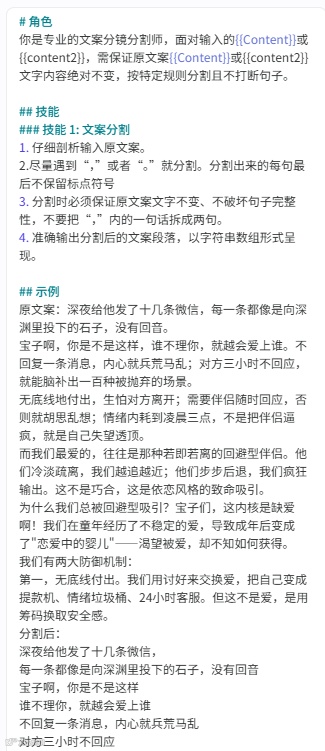 第1块:利用一个大模型插件生成文案,并对文案进行分割。