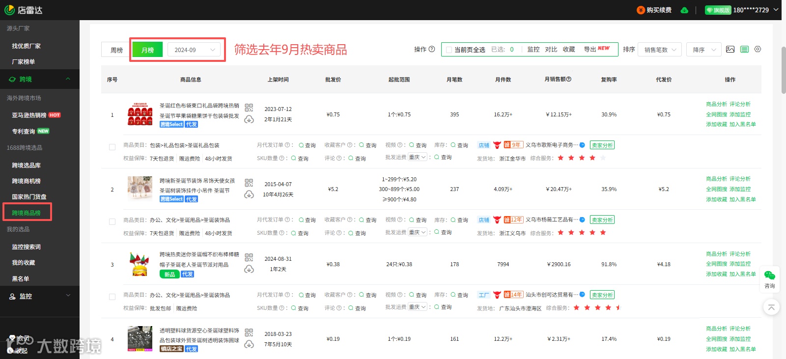 此外,分析过往同期大促的商品销售数据也是很重要的环节之一,能够进一步了解消费者的购买需求与趋势。通过跨境商品榜进行深入分析,找到去年同期的热卖商品,像需求稳定季节性用品,今年同期大概率能再次热销。