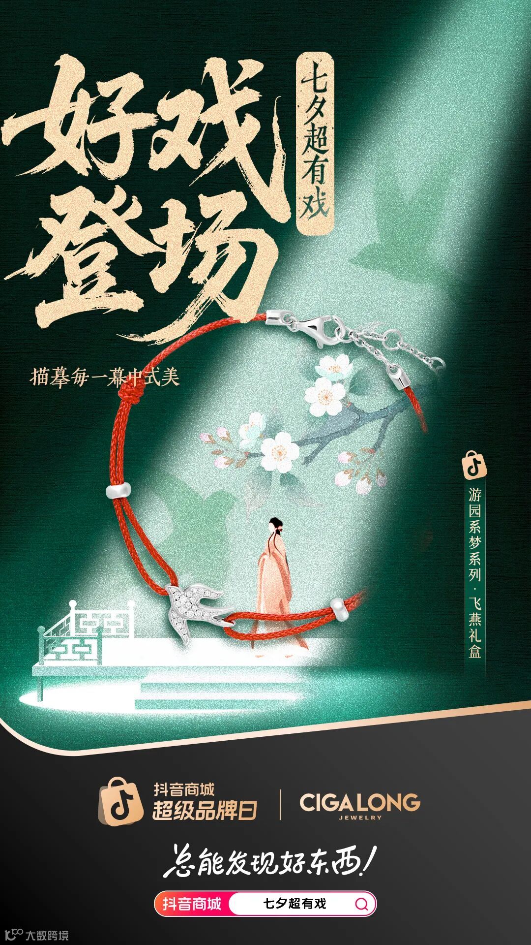 东方美学珠宝品牌CIGALONG则是继续延续品牌的戏曲文化基因,将昆曲《游园惊梦》中的引导杜丽娘还魂与爱人相见的灵鸟——飞燕,化作 爱情信使融入手绳的设计中,为新产品赋予了东方爱情的浪漫与诗意,同时红绳系起爱人们的缘分,又与七夕和传统文化中的美好爱情意向天然契合。