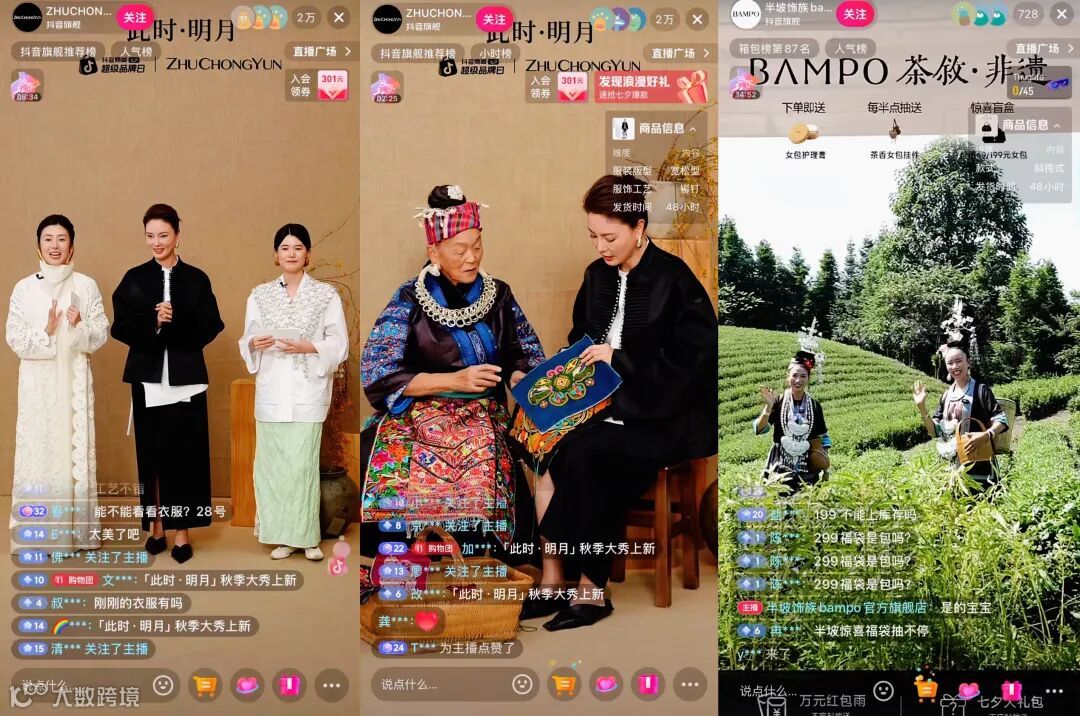 ZHUCHONGYUN 的七夕直播中,主持人刘芳菲、苗绣传承大师潘奶奶、专栏作家陈苍苍共同出现,她们的对话,让服饰与苗绣背后的匠心故事具象化,把东方文化的重量感转化为可感知的叙事;