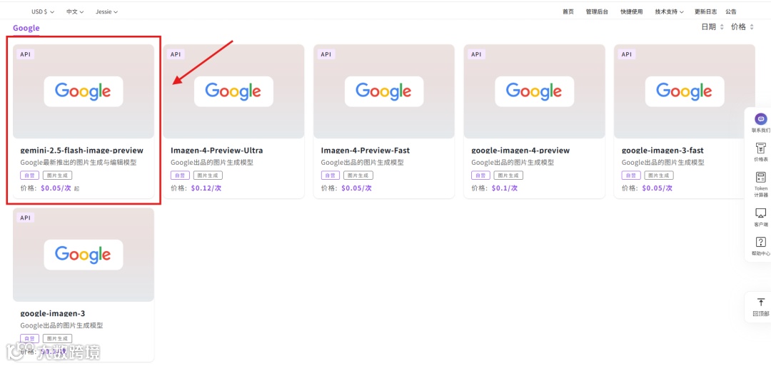 | gemini-2.5-flash-image-preview | 输入3 PTC/1M Tokens;输出30 PTC/1M Tokens 约合$0.03-0.05/次 |
