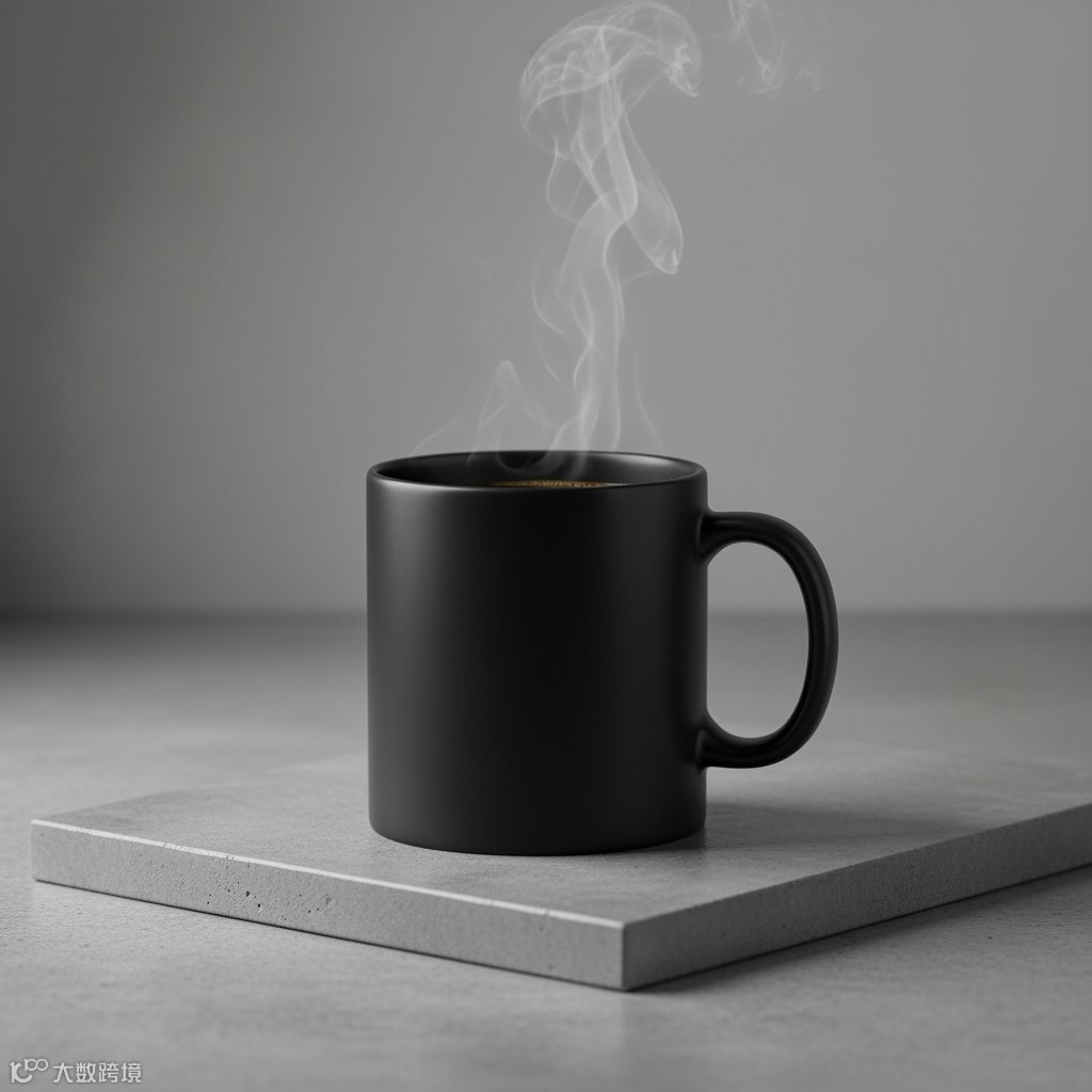 官方案例:一张高分辨率、工作室照明的产品照片,照片中呈现在抛光混凝土表面上的极简主义哑光黑色陶瓷咖啡杯。照明采用三点柔光箱设置,旨在创建柔和、漫射的高光并消除刺眼的阴影。摄像机角度是略微升高的45度镜头,以展示其简洁的线条。超逼真,重点关注咖啡中升起的蒸汽。方形图像。