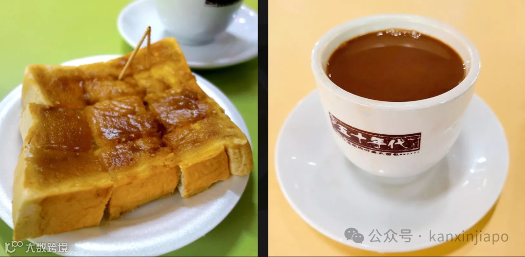 他家售卖的是新加坡经典的下午茶——咖椰吐司配 kopi kosong(黑咖啡)。始于20 世纪 50 年代,已经营了70多年。