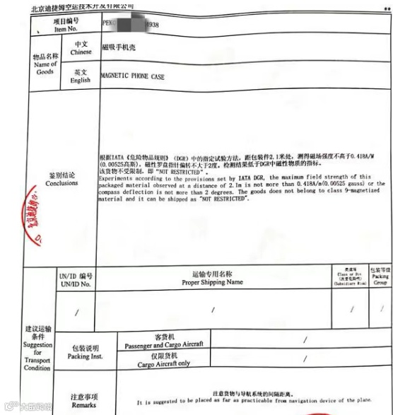 通常需含有磁铁、磁块、磁条等一系列磁性材料的产品需要做磁性检测。卖家朋友运输带有磁性的货物均需经过相应检测机构(需要航司认可的检测机构)检测并出具《航空运输条件鉴定书》,确认属于非危险品后才能有条件承运。