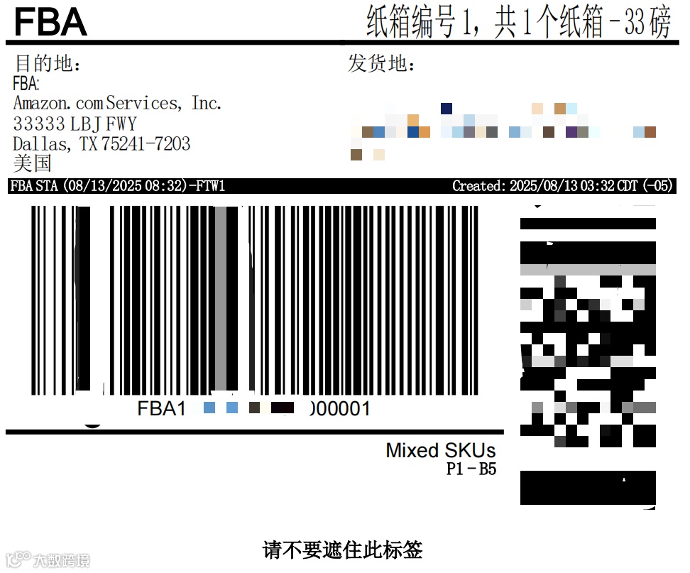 混装:外箱内有不同产品 → 必须贴 “Mixed SKU” 标签。