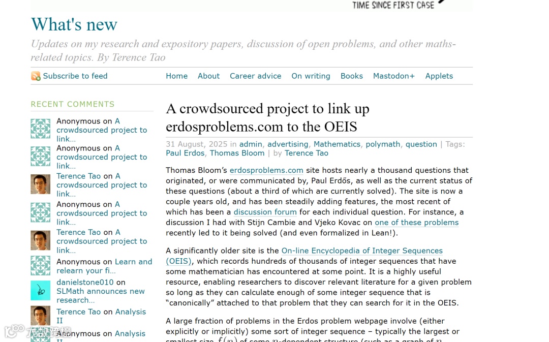[3]https://terrytao.wordpress.com/2025/08/31/a-crowdsourced-project-to-link-up-erdosproblems-com-to-the-oeis/