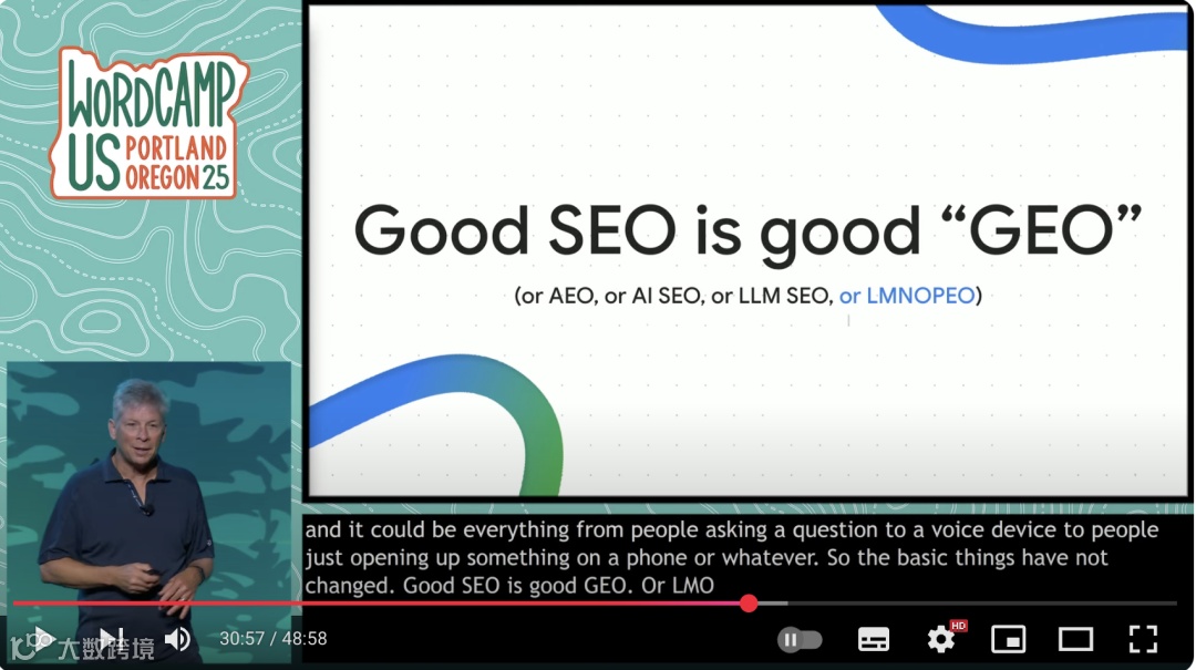 他说,现在大家追捧的 Generative Engine Optimization(GEO)、AI SEO、AEO、LLM SEO 什么的,其实和传统 SEO 做的核心内容没啥区别——都是给用户写有价值的内容,并确保页面体验良好。