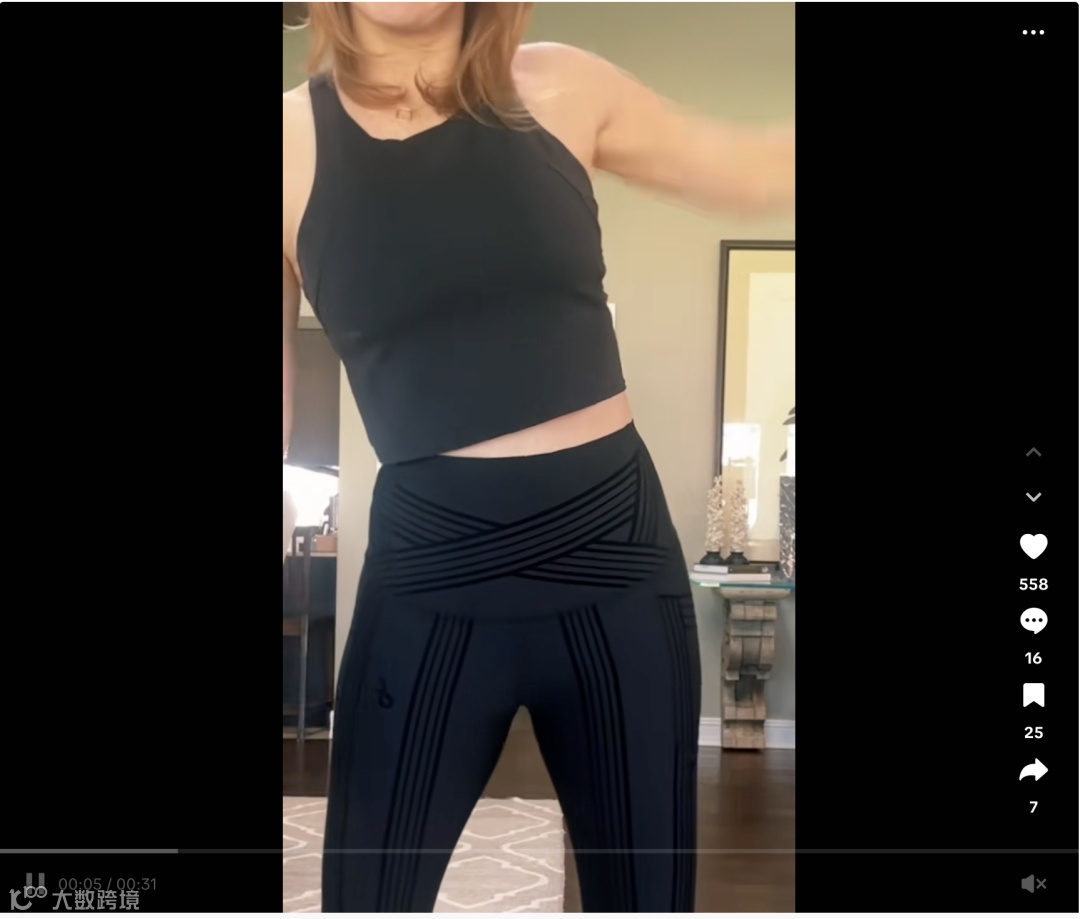 在与Fanka的合作案例中,这种个人风格与品牌需求高度契合。Jennifer曾发布过一条名为《Fanka Resistance Leggings for Tummy Control》的短视频,全程仅31秒,却把产品卖点展现得淋漓尽致。