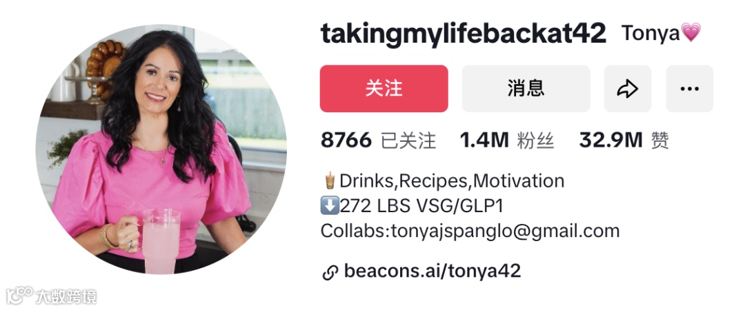 为了精准触达中年女性、减重人群和寻求健康生活方式的消费群体,Halara选择了拥有140万粉丝的海外KOL——takingmylifebackat42,作为其出海营销的重要合作伙伴。